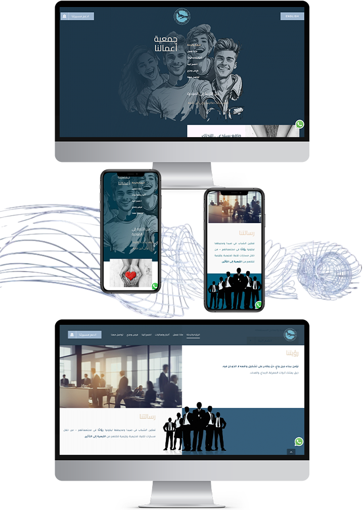 استلهمنا ألوان الموقع من شاطئ المدينة، فابتكرنا لوحة ألوان خاصّة تجمع بين زرقة البحر ودفء الرمال — ناعمة، ودودة، ومفعمة بالحياة. بُني الموقع بالكامل من الصفر: من التصميم إلى الهيكلية، مرورًا بالمحتوى الثنائي اللغة، بما ينسجم كليًا مع صوت “أعمالُنا” وقيمها.